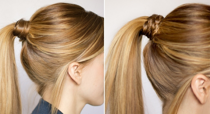 В основе этой укладки лежит обычный конский хвост, который создается вверху или внизу из нижних прядей. Передние же волосы начесываются, и получившиеся локоны укладываются поверх хвоста. Здесь все зависит уже от фантазии создателя. Также отлично будет сочетать его с лентой.