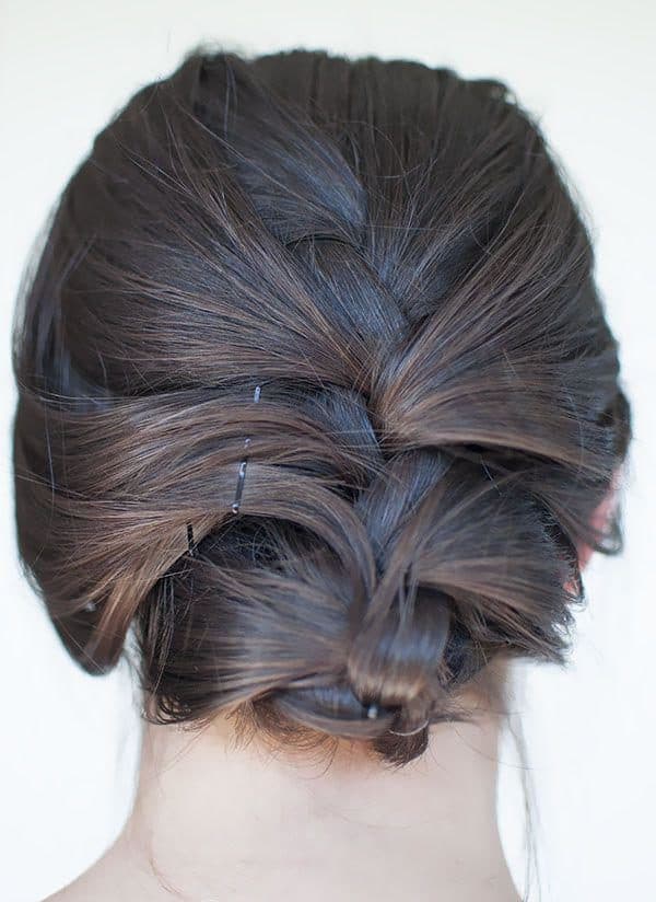 - Концы волос не прячьте, а аккуратно сверните в кольцо, закрепив невидимками