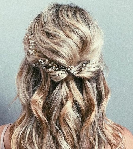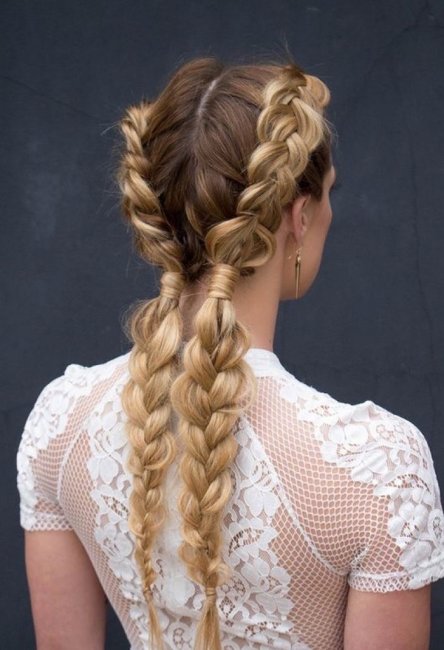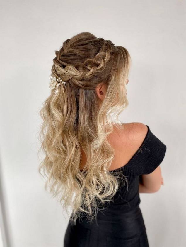 Волосы можно распустить, собрать в пучок или украсить плетением. Длина волос позволяет сделать роскошную голландскую косу — объёмную косу с вплетёнными цветами или жемчугом. Если с короткими волосами меньше вариантов, то с длинными — ещё больше работы.
