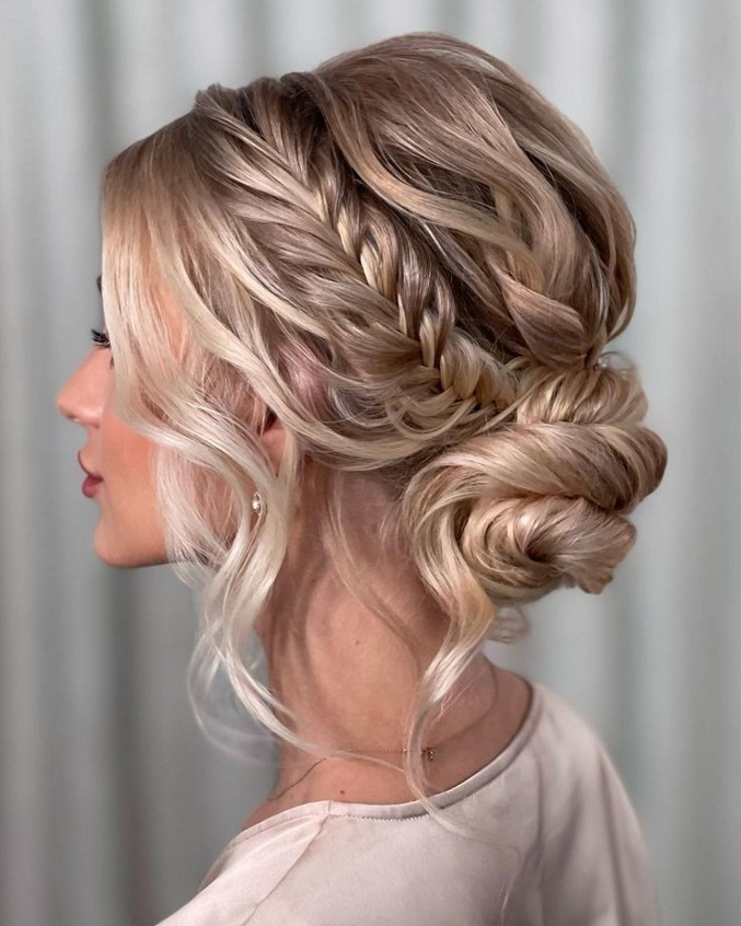 Пучок с плетением потребует от вас сноровки, но шикарный результат того стоит. Потренируйтесь, если есть такая возможность, за несколько дней до торжества.