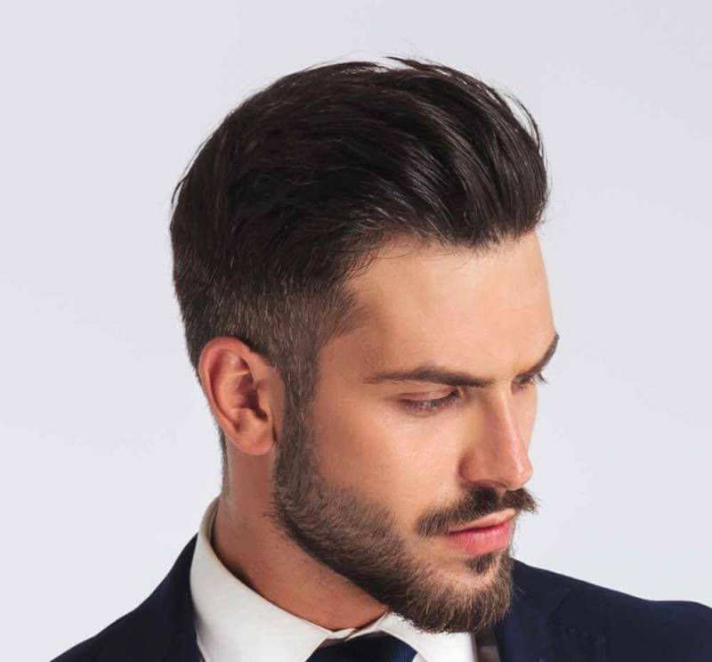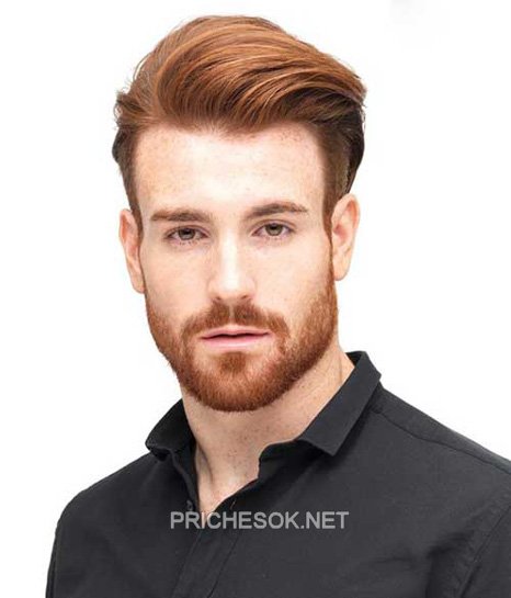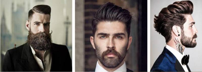 У мужчин с бородой, следует создавать по бокам и возле висков видимость густых волос. Это делают с помощью специальной укладки и прядей.