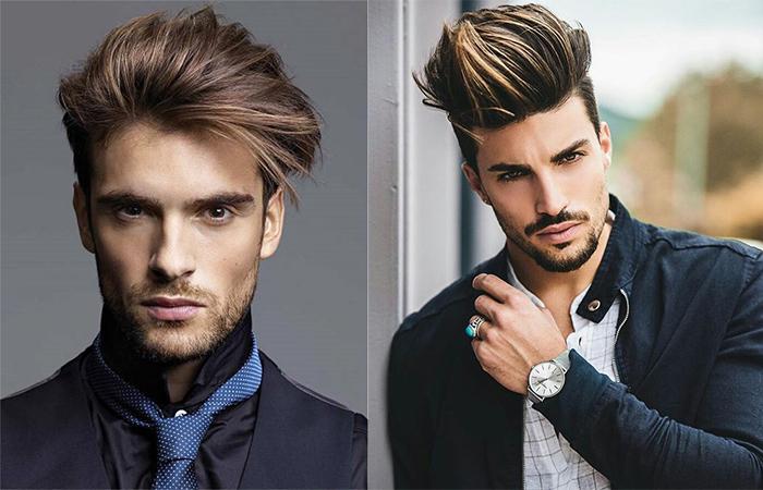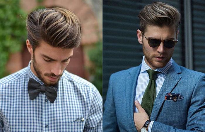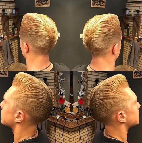 У молодых людей,которые предпочитают данную прическу, отлично получается укладывать волосы назад, предварительно поднимая их вверх.