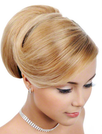 - Пухлым женщинам рекомендуется визуально удлинить овал, а не увеличивать ширину лица. Для этого объемные конструкции размещаются на макушке, расположение элементов по бокам запрещено. От идеальной гладкости в области макушки лучше отказаться: отказаться от «зализанного» фасона. Пучок можно переместить на затылок, но начесать макушку.
