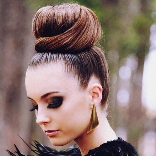 Множество разновидностей и вариантов этой прически позволяют иметь богатый выбор причесок как для взрослой дамы, так и для совсем юной модницы. Шишка прекрасно сочетается с актуальным сейчас ретро-стилем. Идеально подойдет для тематических вечеринок.