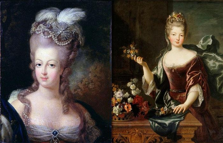 Дамы часто делали прически, которые возвышались над макушкой на несколько десятков сантиметров (в ход шли проволочные каркасы). Такие нагромождения напоминали своей пышностью и вычурностью мужские парики в стиле барокко.