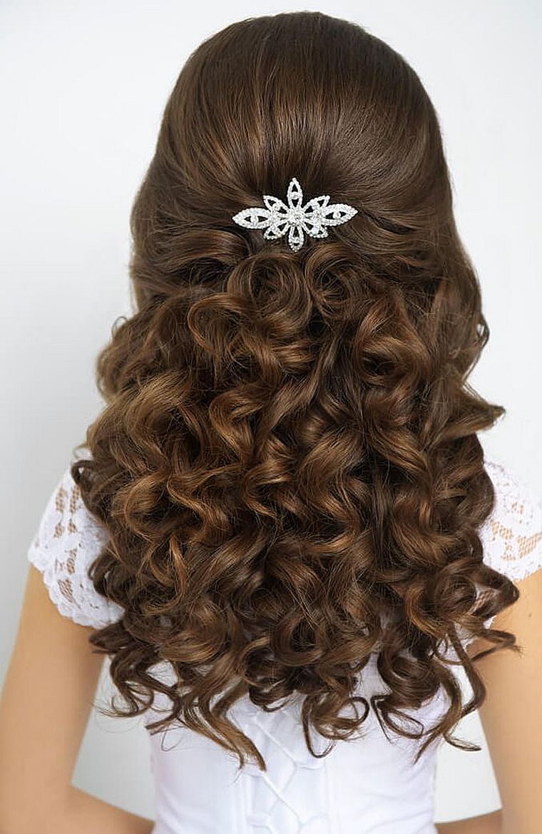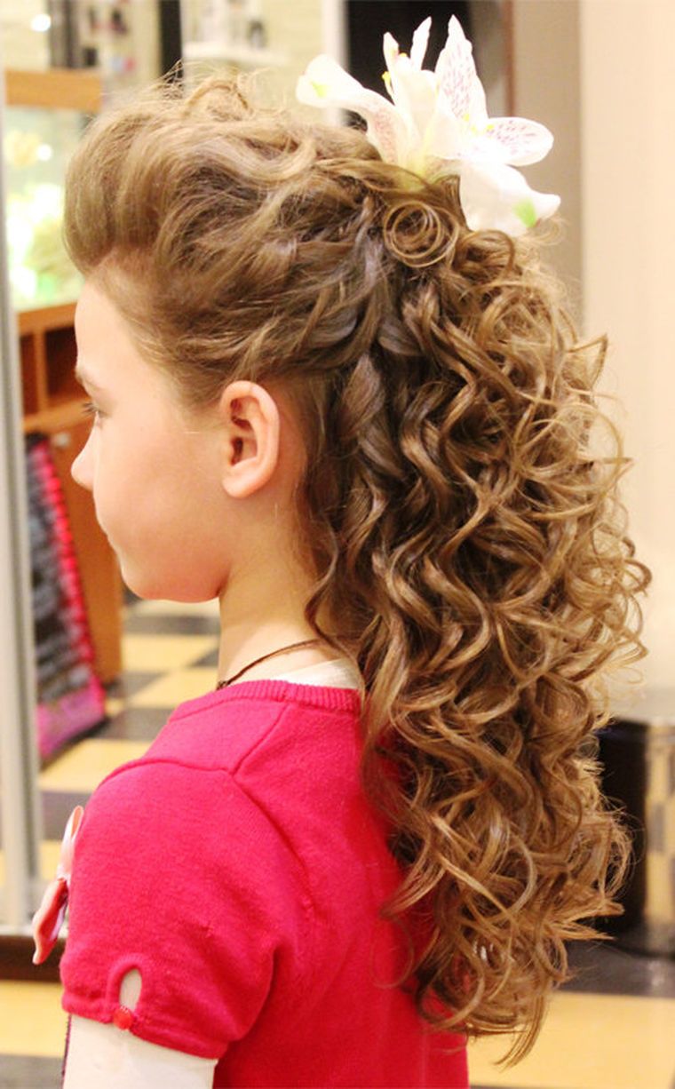 - укладка «водопад»: красивая кудрявая волна, ниспадающая на спину, и собранные резинкой или невидимками ближе к макушке боковые пряди.