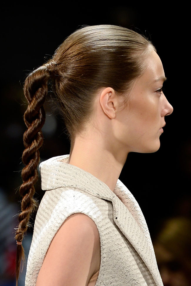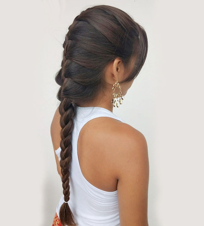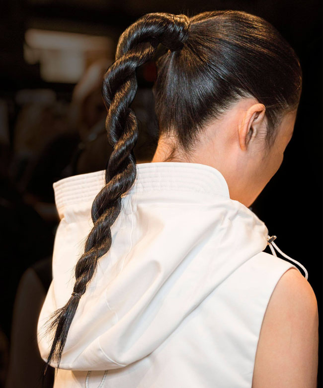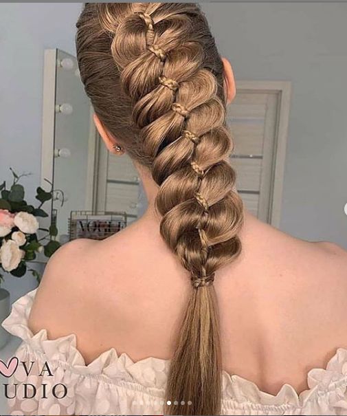 Интересная интерпретация привычного конского хвоста. Это смесь хвостика и косы. Чем больше длина — тем эффектнее вид. Занимает первые места в рейтинге стильных причесок.