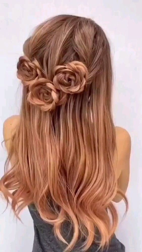 - Формируем цветы из хвостика, складывая волосы и фиксируя шпильками.