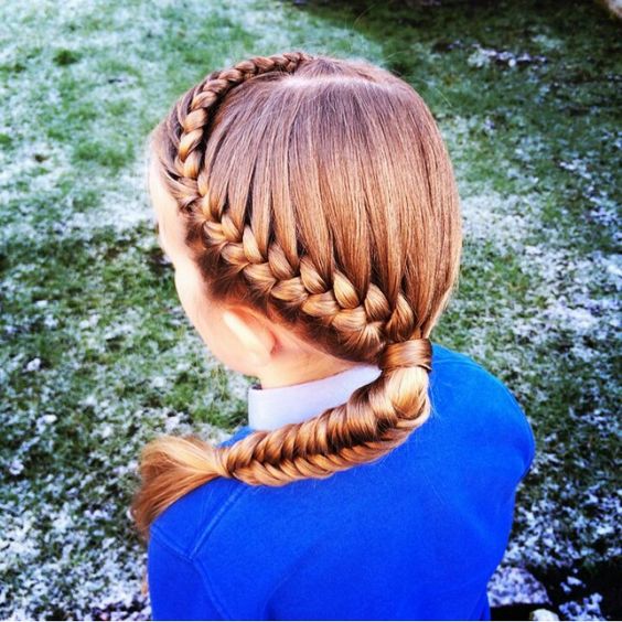 Боксерские косы идеальны для женщин предпочитающих спортивный стиль. Но и с женственным платьем или юбкой они тоже будут выглядеть стильно. Заплетите косы, с прямым пробором, зафиксируйте тонкой резинкой-невидимкой кончик, и на весь день вам гарантирован идеальный вид.