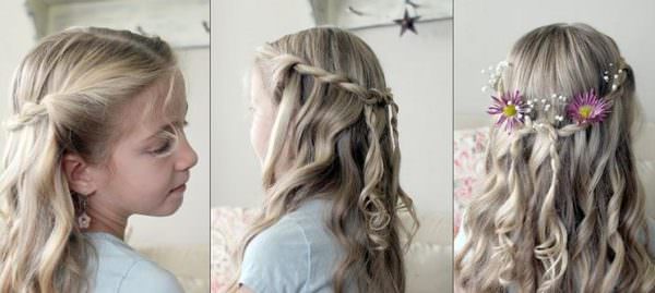 - детские прически для девочек с использованием различных термических аксессуаров следует выполнять предельно аккуратно. Кудри и щипцы для завивки могут быстро повредить ломкие волосы ребенка. Лучше использовать эти предметы как можно реже — только для праздников или важных событий;
