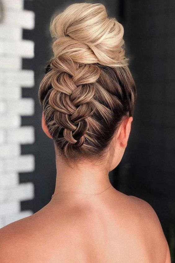 Еще один более оригинальный вариант – это высокие косы. Нужно просто сделать высокий конский хвост. Потом доплести простую косу из трех прядей до конца. Наконец, чтобы добавить небрежности, взъерошьте несколько прядей.