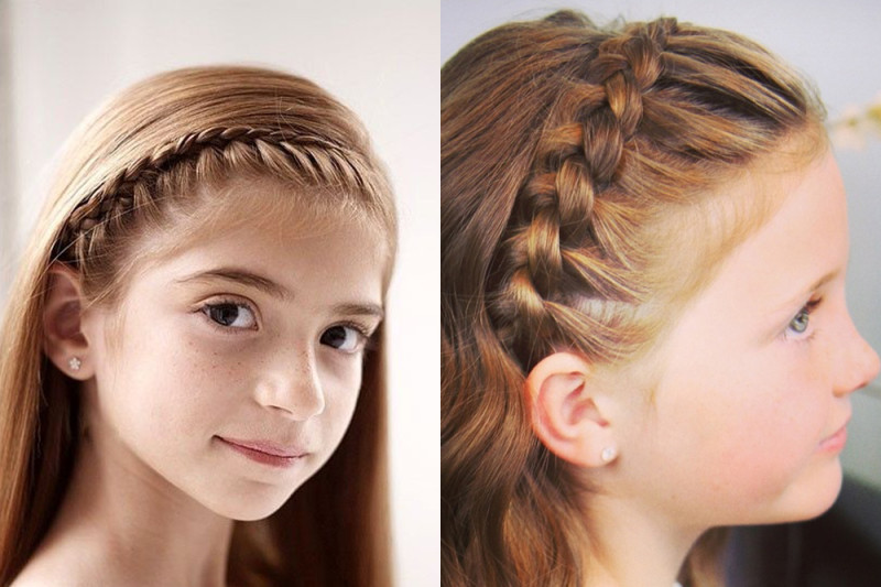 Умело убрать волосы с лица, не скрывая при этом красоту волос, можно с помощью ободка-косички. Такая прическа будет отлично держать волосы, не создавая дискомфорта девочке.