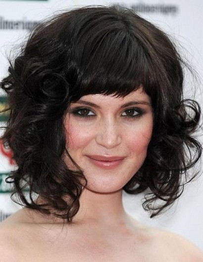 Челка в кудрявом каре применяется очень часто – с ней шевелюра смотрится более гармонично. Прямую челку на вьющихся волосах сделать практически нереально, поэтому в большинстве случаев ее делают рваной, короткой набок или длинной косой.