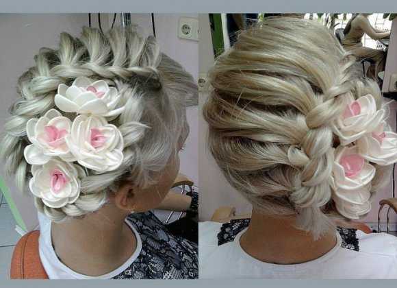 Но с цветами следует соблюдать осторожность, ведь если лицо крупное или массивное, то цветок не должен акцентировать на этом внимание. В большинстве своем прически свадебные для полных девушек должны украшаться по минимуму, акцент делается на сложность техники выполнения. Не стоит превращать голову в новогоднюю елку