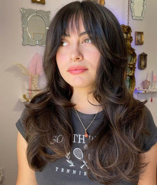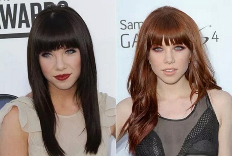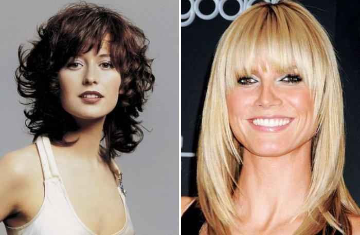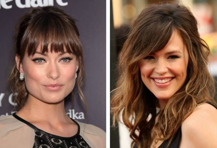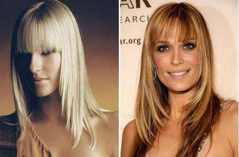 Скорректирует вытянутые линии и правильно подобранная челка. Лучше, если она будет густая и ровная.