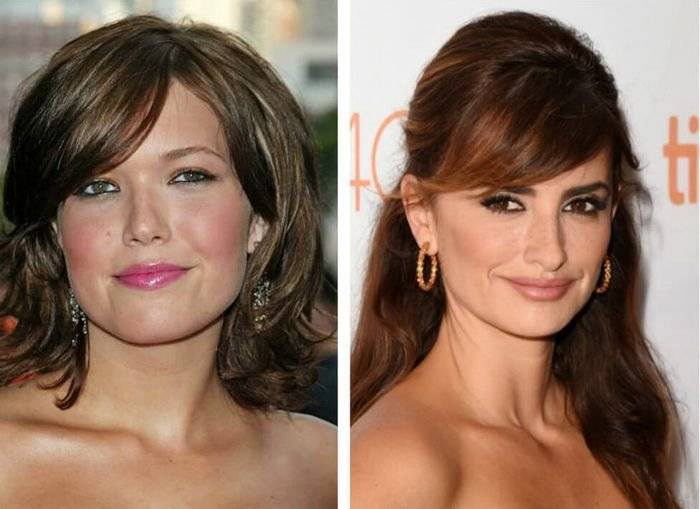 От чего стоит отказаться? Причесок с прямой ровной челкой; причесок с объемом в области ушей или, наоборот, с волосами, заправленными за уши; причесок круглой формы, которые еще больше подчеркнут форму лица.