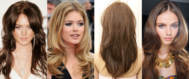 Обладательницам длинных волос нужно максимально стараться увеличивать объем прически. Помогут крупные бигуди или фен, а также специальные косметические средства для увеличения объема.
