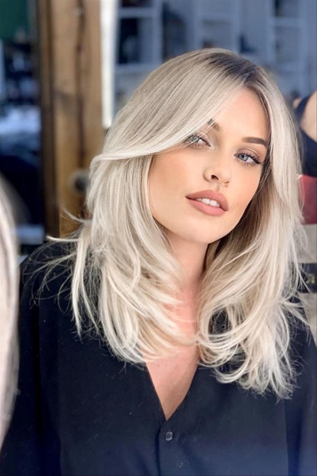 Средняя длина волос для прямоугольных лиц наиболее предпочтительна, стилисты считают ее идеальной для этого типажа. Объем и текстурная стрижка на средней длине освежат весь женский образ. Главное, не забывать все то же правило №1 – многослойность.
