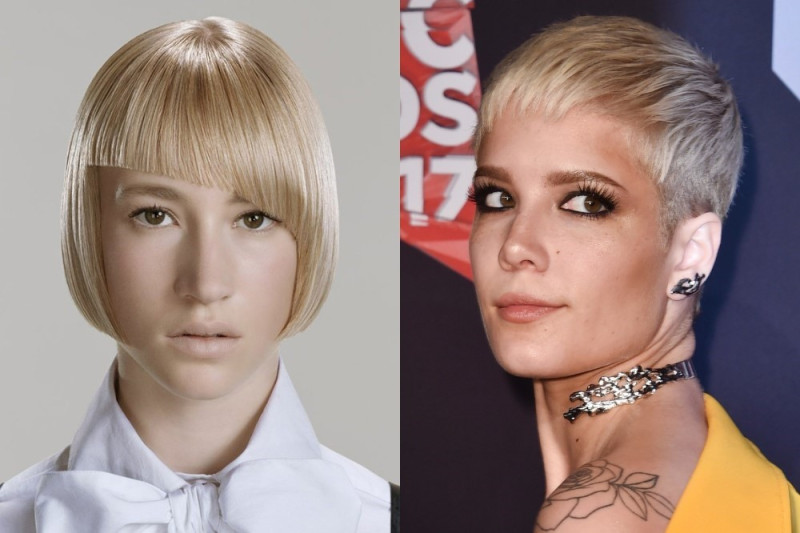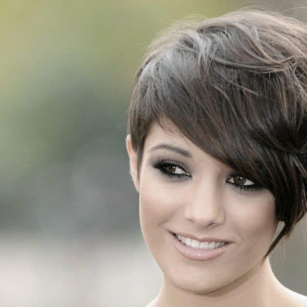 Удачной причёской будет та, которая сможет создать чёткую линию скул и подбородка. Например, длинные каскадные стрижки или взъерошенные «Пикси» помогут создать гармоничный образ. Выбирая текстурированный и каскадный стиль, избегайте строгих геометрических линий, следите за взъёрошенным состоянием локонов, которые должны заканчиваться немного ниже линии подбородка. Вы также можете выбрать короткую скошенную чёлку, заканчивающуюся у линии глаз, чтобы удлинить овал лица.