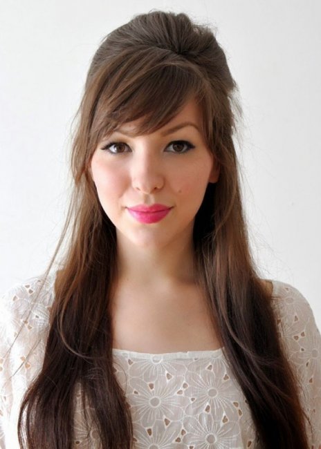 Да и выглядит такая укладка очень женственно и сексуально. Специалисты утверждают, что лучше всего смотрятся длинные волосы без челки. Но при желании можно обрезать объемную челочку до уровня бровей.