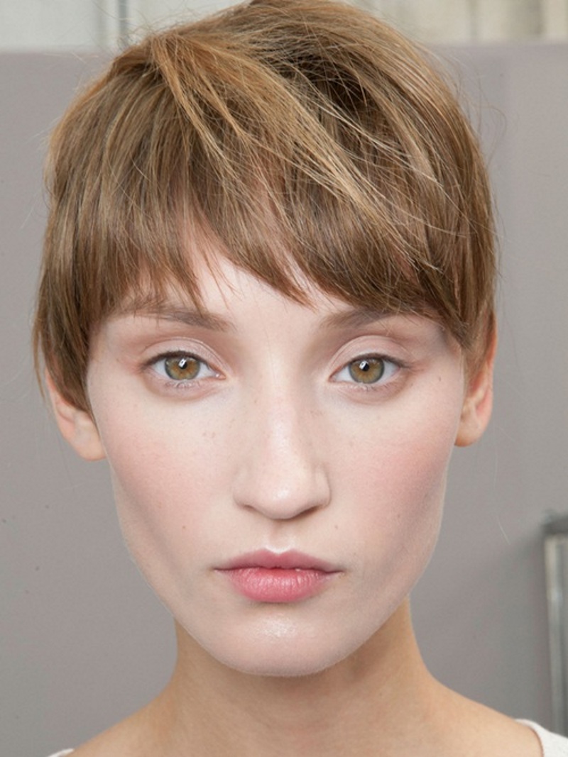 Трудно представить стрижку или прическу для девушки с прямоугольным лицом без челки. Челка может взять на себя основные функции по скруглению лица, особенно при коротких стрижках. Тупые прямые или слегка срезанные челки очень нужны на прямоугольном лице.