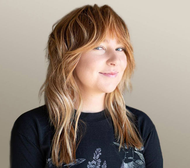 Длинные пряди, падающие на угловатую челюсть, помогут скрыть ее ширину. Перистая стрижка вдоль контуров лица создаст зрительный овал.