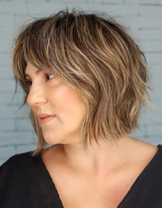 Прическа с рваными концами растрепанных и лохматых волос. Пряди стригутся хаотично, на разной длине. Заканчивается стрижка филировкой. Такая стрижка помогает скрыть некоторые недостатки в форме лица. Но круглолицым женщинам выбирать такой вариант не рекомендуется