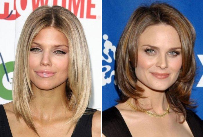 Средняя длина волос и сделанные на нее стрижки – идеальный вариант для того чтобы скрыть округлость лица, сделать его визуально более узким. Есть несколько неплохих стрижек, которые подойдут для такого случая.