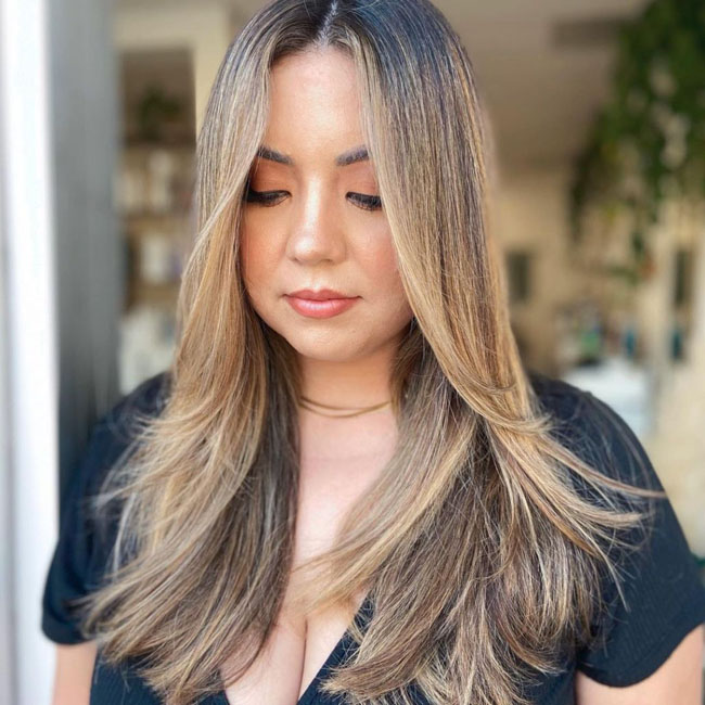 Волосам длинным, но тонким, можно добавить объема мелированием. Прическа визуально будет казаться гуще.