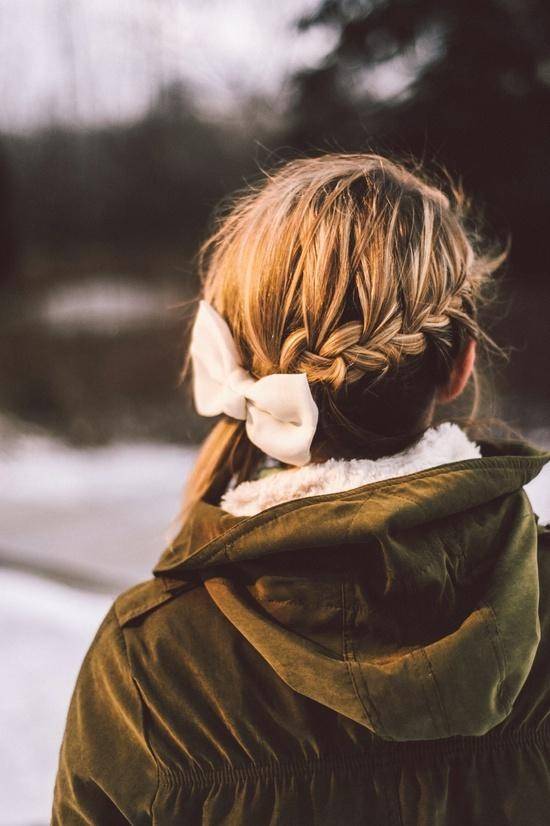 Не стоит далеко ходить за вариантами, красиво заплетали волосы в школу еще наши бабушки. Брать идеи «из народа» — отличный вариант. Это плетение подойдет для девочек с длинными волосами, желательно, чтобы они были густыми. Вам понадобится атласная лента.