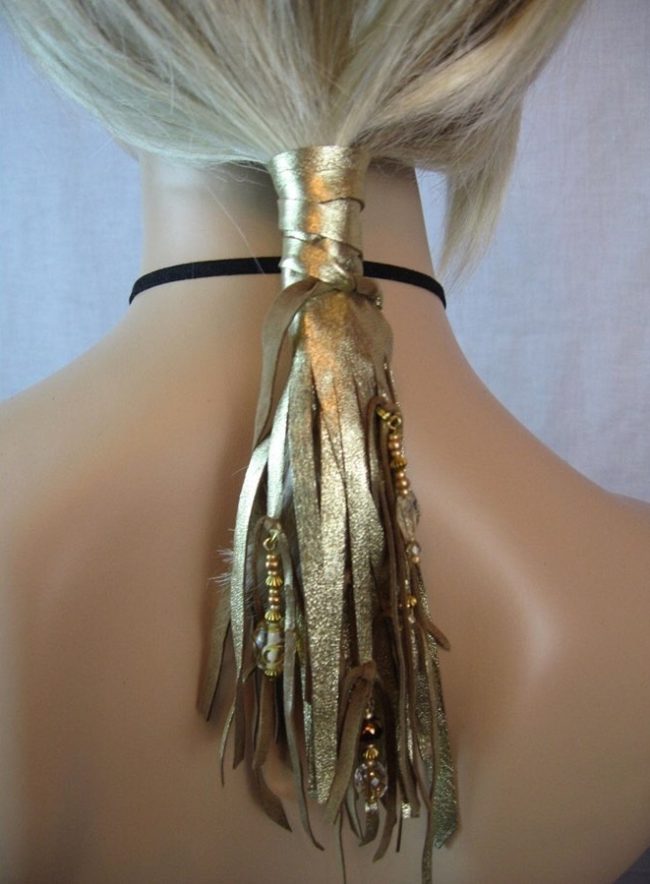 В этом случае вы собираете волосы в плотный хвост и фиксируете прическу резинкой. Далее заплетаете косу с использованием оригинальной ленты, возможно с цветами. Окончание косы фиксируете резинкой для волос и готово!