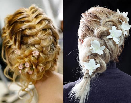 Предварительно следует сделать легкий начес волос у корней, а затем уложить волосы на бок и завить их. Украшением такой стильной укладки может быть цветок, как живой, так и искусственный. Также стильно выглядит хвост уложенный на бок и коса.
