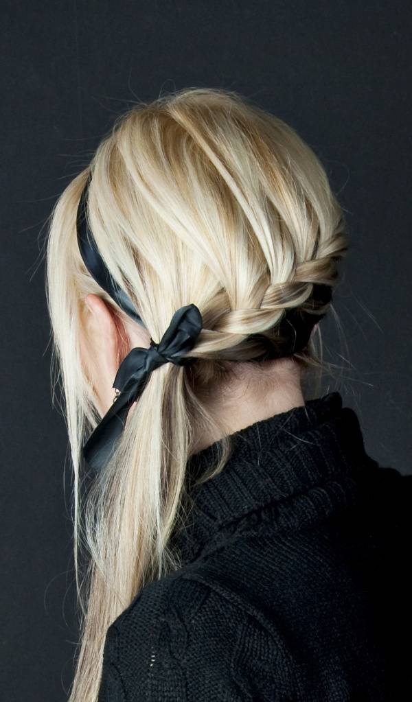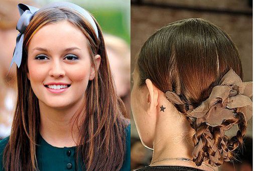 Идеальным вариантом для такой укладки станут шелковые ленты с бантами. При этом помните, что повязка не должна сливаться со цветом волос, но и не должна быть слишком яркой. Идеальная цветовая палитра — коричневый, бежевый, черный и синий.