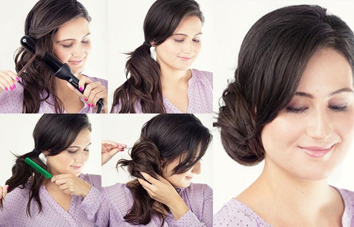Все что вам понадобиться – это несколько шпилек для волос, невидимки, лак для волос и круглая щетка. При этом все, что вам потребуется сделать, так это плотно заколоть волосы вовнутрь, оставляя несколько выпадающих прядей.