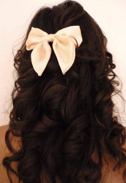 Любительницам локонов и распущенных волос стоит взять на заметку такой способ укладки. Волосы слегка накрутите плойкой. На макушке сделайте небольшой начес, чтобы сделать прическу пышнее. Подколите невидимками пряди с обеих сторон. В качестве украшения используйте заколку-бант. Зафиксируйте укладку лаком.