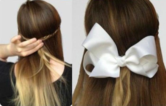 Это плетение подойдет девочкам школу, в начальные классы. Хорошо сочетается со школьной формой. Учтите, что лента не должна быть яркой и тем самым выделяться. Лучше всего выбрать ленту белого цвета или постельных оттенков.