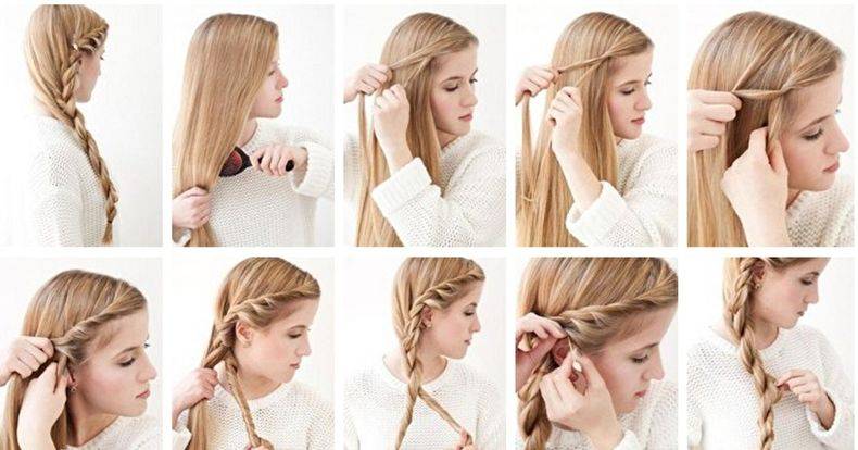 Хвост с косой набок — очень простая по выполнению прическа, она придаст образу романтики, юношеской нежности. Вам необходимо сделать косой пробор. Выделите прядь с левой стороны от пробора, перекиньте ее вправо. Выделите еще 2 пряди только с правой стороны от пробора, сплетите свободную косу. Соберите волосы в боковой хвост, добавьте плетение. Украсьте лентой или красивой заколкой, а концы волос подкрутите.