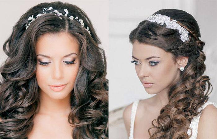 Следующие фото продемонстрируют несколько успешных идей укладки с применением ажурных заколок и диадем на волосы различной длины.