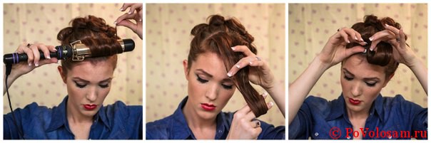 - Прически пин-ап на длинные волосы должны быть объемными, поэтому, если они у вас тонкие от природы, используйте специальные валики. Их можно приобрести в парикмахерских магазинах. Они изготавливаются под разный цвет волос и достаточно пластичны, что позволяет легко моделировать любую форму прически даже дома.