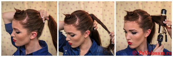 Образующиеся в результате завершения укладки два симпатичных гребня, проходящих параллельно вдоль макушки, будут отличным источником вдохновения для последующего создания всего образа в стиле ретро. К примеру, можно оставить волосы распущенными, а можно собрать их в хвост. Как это сделать наглядно покажет пошаговое фото прически.