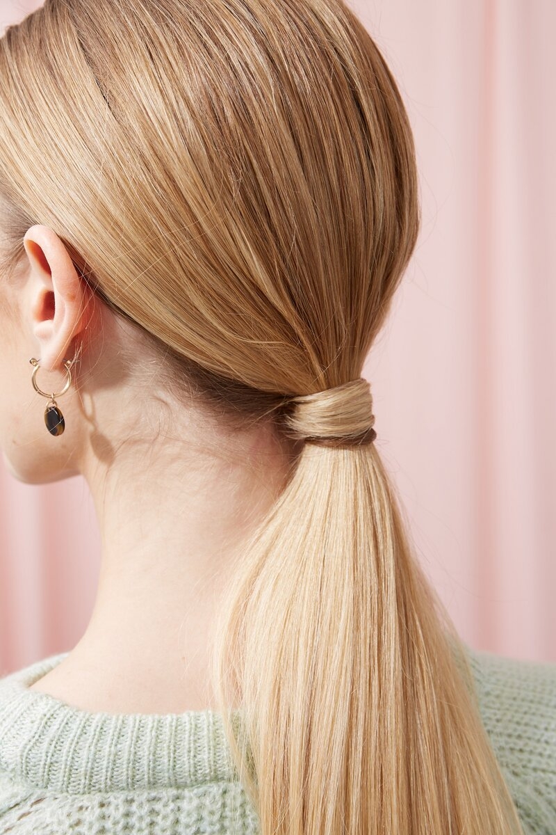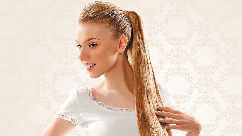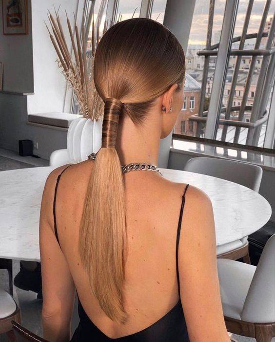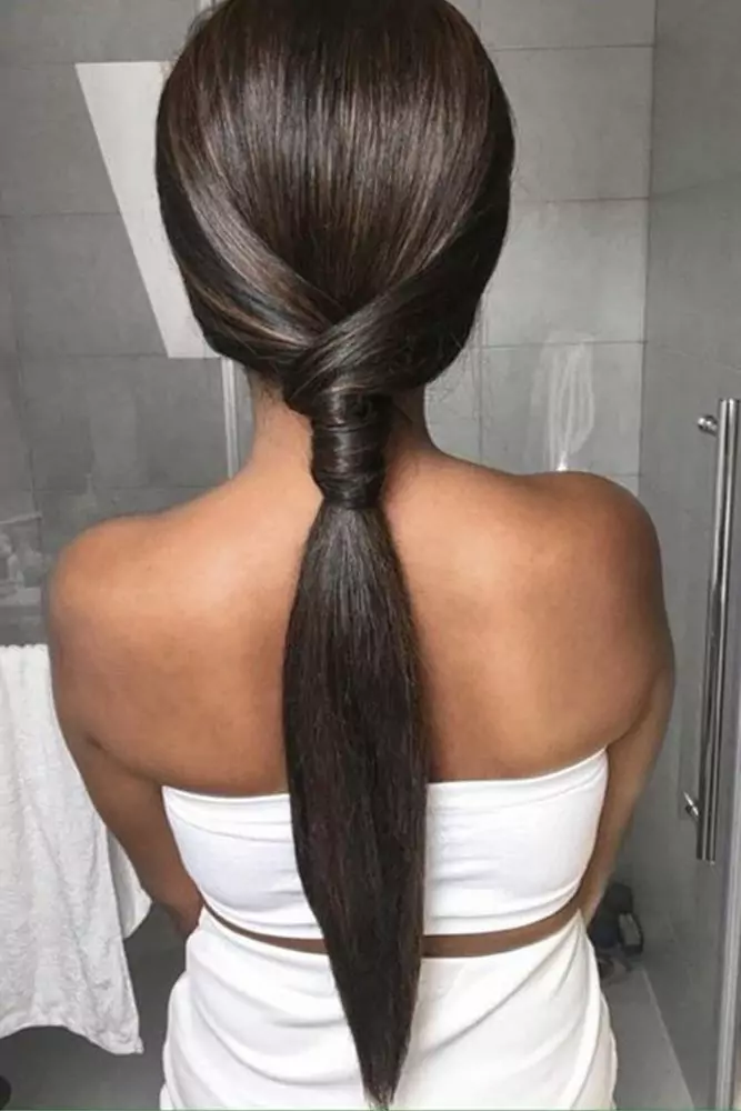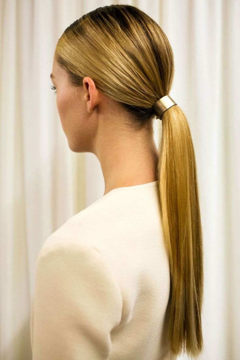 Классический хвостик состоит из прямых волос, собранных на затылке. Такая прическа выглядит элегантно и довольно скромно, что делает ее подходящей для повседневных мероприятий. Локоны в таком стиле должны быть гладкими. Если у вас волнистые или вьющиеся волосы от природы, выпрямите их с помощью круглой расчески и фена. Также можно воспользоваться специальным разглаживающим средством и удлинить локоны утюжком. Перед выпрямлением используйте термозащитный кожух. Он защитит волосы от агрессивных температур.