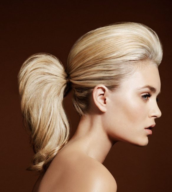 Оригинальная прическа для любого случая – хвост с начесом. Как ранее говорилось, тем, у кого тонкие волосы, лучше всего выполнить начес. Объем на волосах получится дополнительный, и такая укладка хороша для вечернего сета.