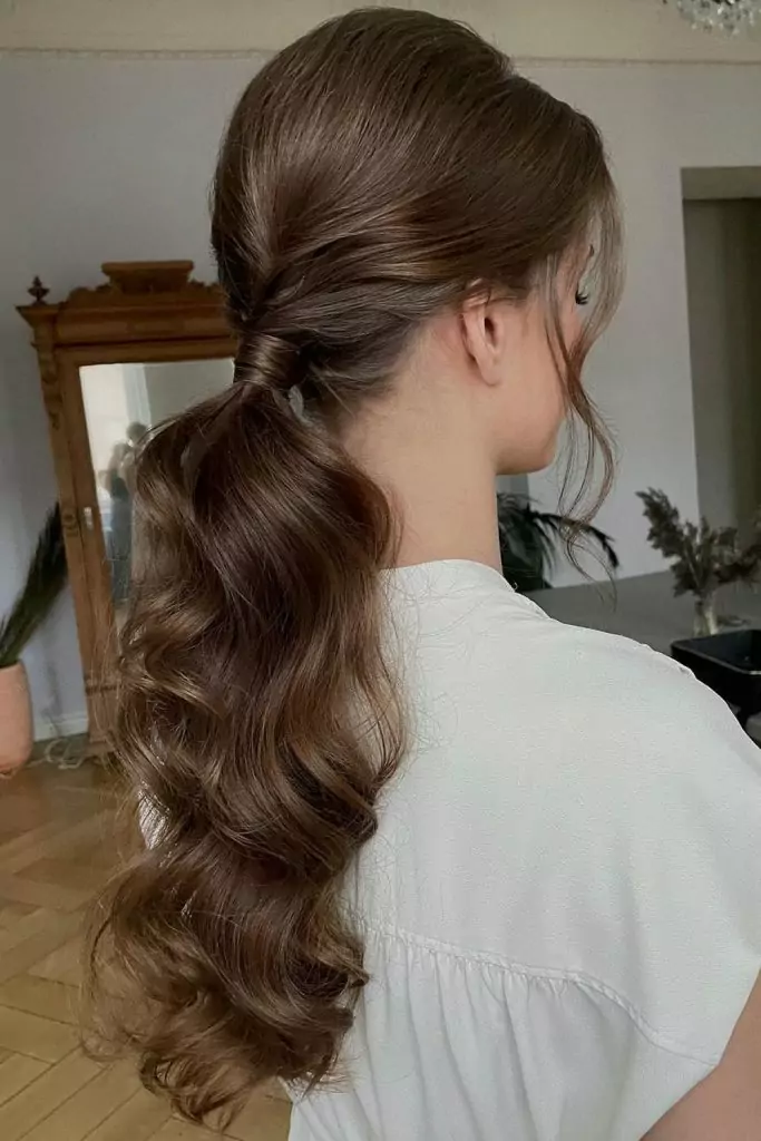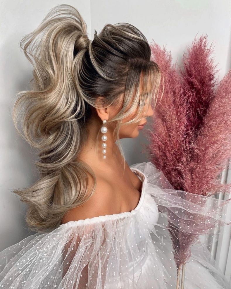 Стоит выпустить пару прядей у лица. Сам хвост можно оставить без украшений для большей лаконичности или, наоборот, дополнить его лентами, заколками или стразами. Для вечернего выхода под такую прическу подбирают крупные серьги, которые станут завершением сета и объединят все составляющие элементы в общий вид.