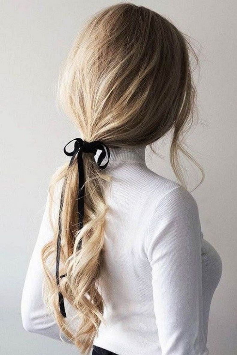 Такая укладка впишется даже в самый строгий офисный стиль и пройдёт дресс-код. Собрать волосы на затылке можно за пару минут, после чего есть возможность украсить хвостик любой заколкой или декоративной резиночкой.