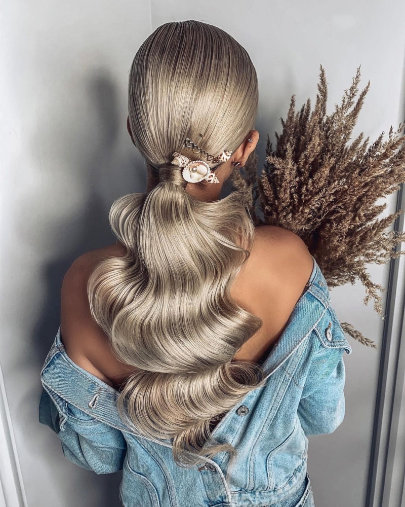 На оформление высокого хвоста не нужно много времени, а также большого количества средств для стайлинга и приборов для укладки, помимо щипцов, если планируются волны.