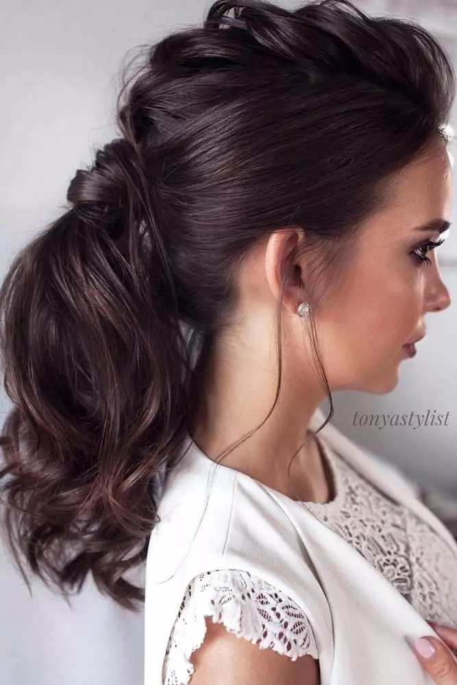 Красивый хвост с начесом придаст романтичности и сделает девушку похожей на сказочную принцессу, особенно, если волосы подвить. Дополнить такой хвост можно ленточками, жгутами, косами, отчего прическа только выиграет.