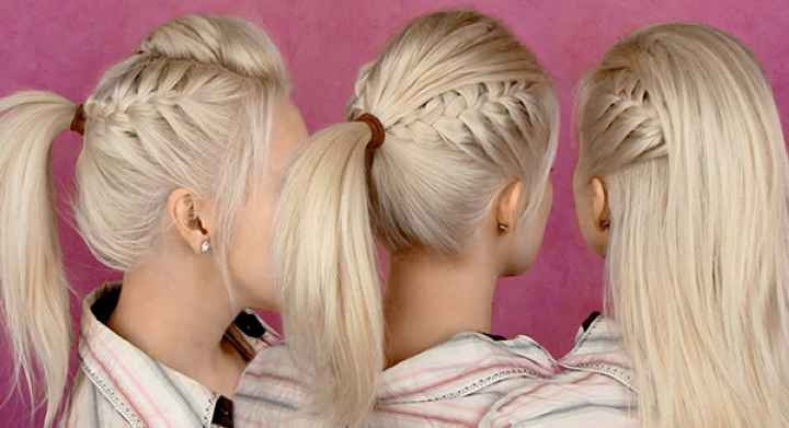 Плетение придаст простому хвосту изысканности и шарма, а маленьким дамочкам решит проблему падения прядей на глаза.