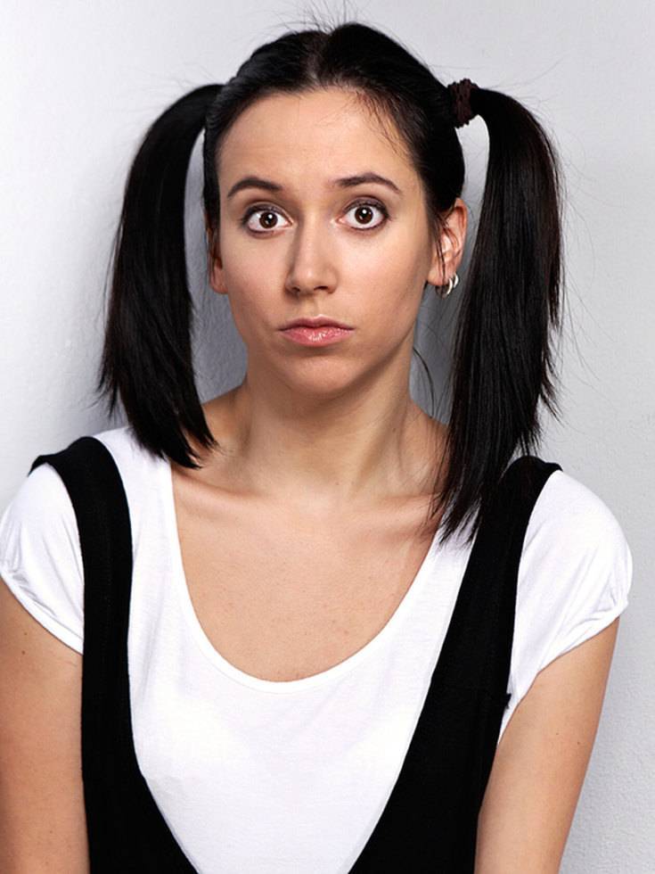- Узкое лицо с острым подбородком и плохо выделенными скулами. В этом случае можно сделать 2 хвоста по бокам. Такой вариант подойдет только молодым представительницам.
