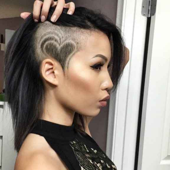 Креативный и смелый! Выбритые виски или затылок несколько лет назад взорвали парикмахерскую моду и удачно закрепились на ее Олимпе. Когда-то этот стиль означал принадлежность к субкультуре. Но со временем все изменилось. А теперь самые смелые модницы бреют виски и затылок. Но вершиной мастерства является рисование на выбритой области. Какая красота не красится на мастерской машинке!