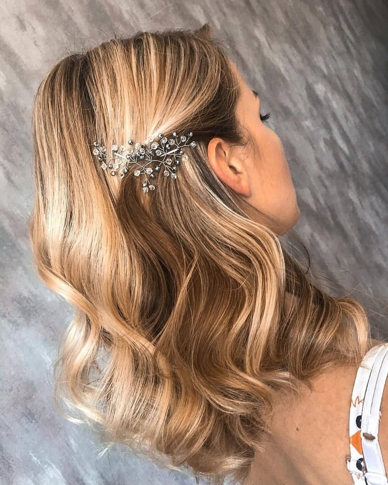 - Голливудские волны являются наиболее востребованной укладкой для праздничных образов. Очень легкие и плавные волны придают особый шарм прическе, которую можно довершить заколками с камнями, ободком или веночком. Голливудские волны прекрасно смотрятся на любой длине и структуре волос.